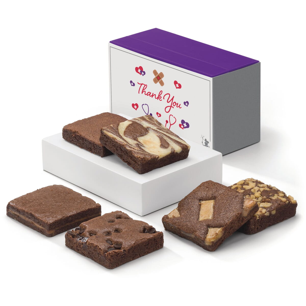 This gourmet half-dozen includes an assortment of fudgy, full-size brownie flavors, all individually wrapped. We only bake with Callebaut Belgian chocolate and all-natural ingredients for a taste they won't experience anywhere else!